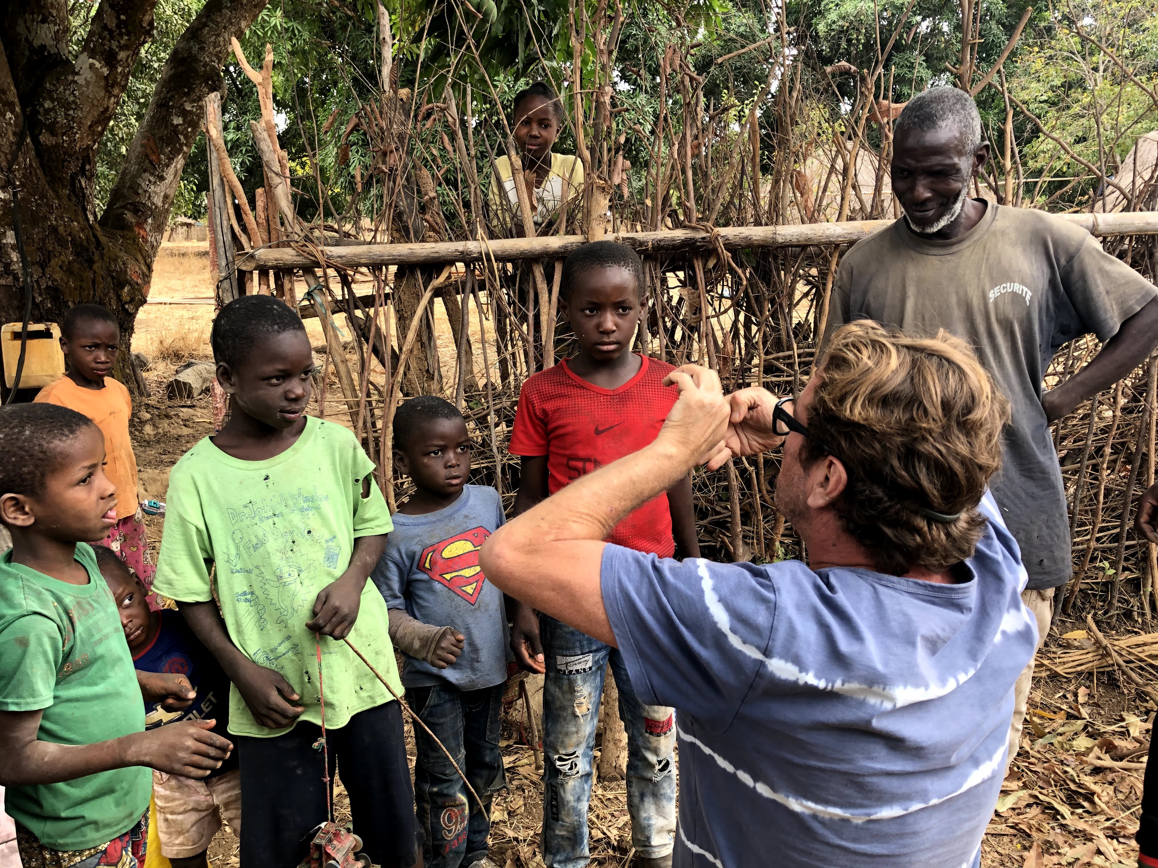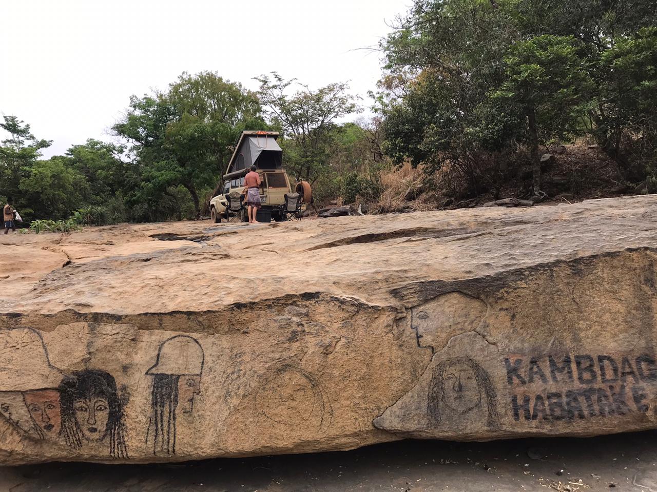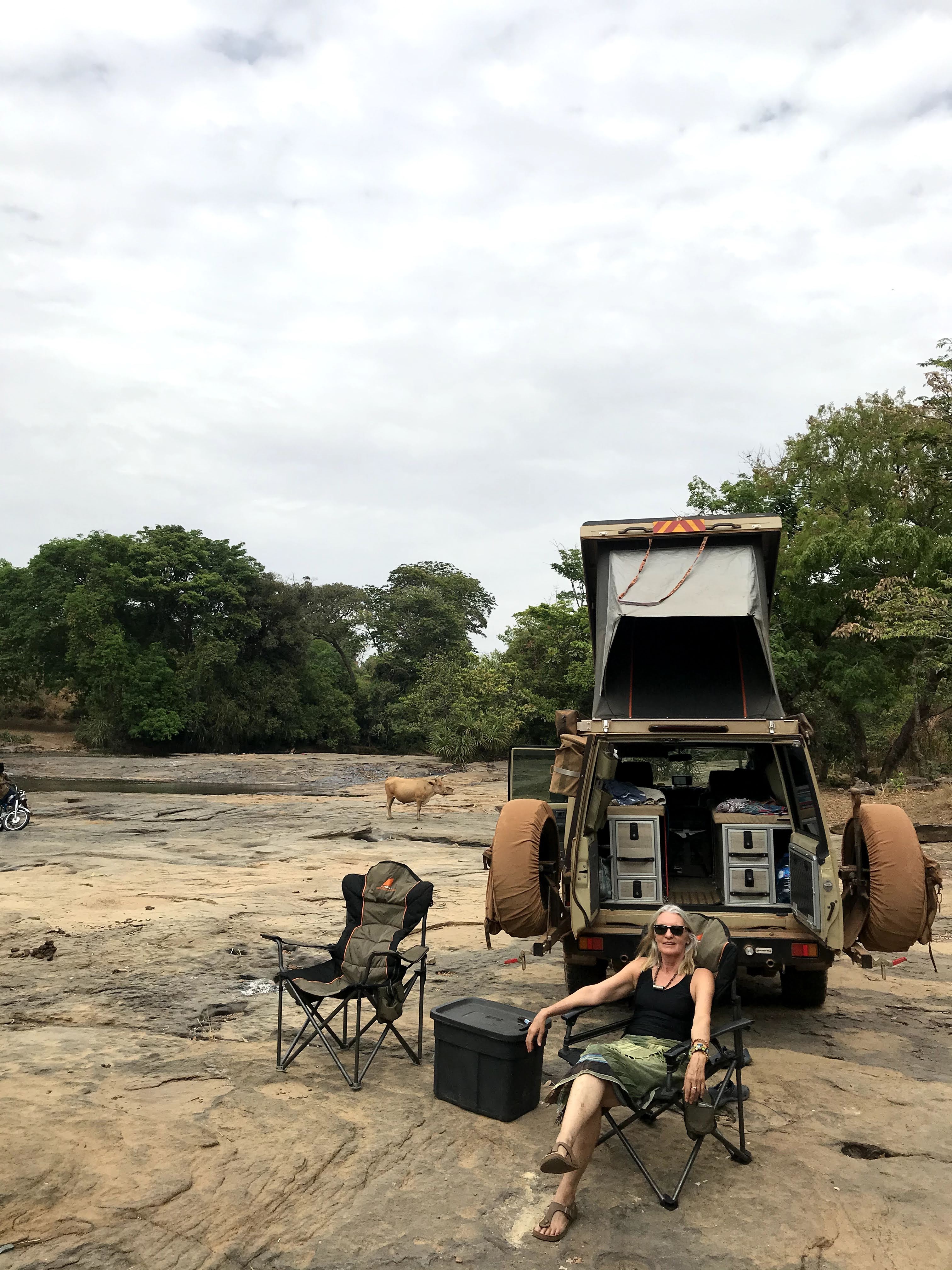The real world of our journey is back on us. We move on dusty roads heading for Kambadaga waterfalls south of Labe for our second night of the Guinea crossing. Again it’s a long day on the road that ends at dusk with our arrival at the top of the falls. But not before we have managed to navigate past the villagers who collect tithes from visitors wanting to see the falls. We decide this is not an African thing and engage with the tithe collectors in a mixture of broken Xhosa and Zulu. Speaking wildly and gesticulating that we are from the south, Africans like them, Xhosa speakers, we somehow impress upon our Guinean tithe collectors that we are one of them. Just a pale one. Not an English or French one. An African one. Food and gifts for the children are donated. And finally we are free to go. We decide to compensate them all on our return up the same track in the morning.