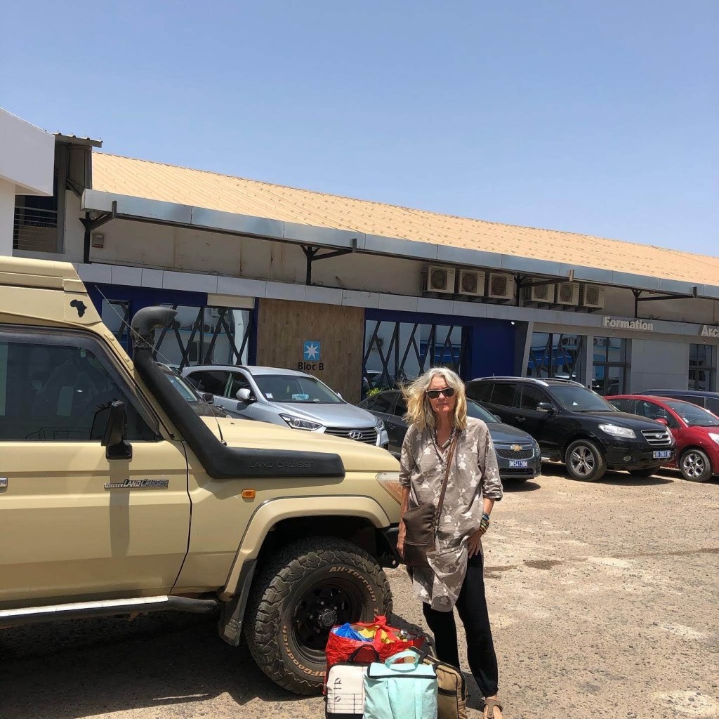 We are moving at speed. No time for administrative formalities at Safmarine. We trust these people. We tell them they must complete the carnet de passage formalities, clear customs and load our vehicle into a container for us. We donāt have time to do any of that. We must get to the airport and check in and wait. They fully understand. Assuring us all the necessary paperwork will be done. They book us a taxi and shepherd us into its back seat with smiles and hugs and goodbyes. And we are on our way to the airport.Ā Safmarine with Marie Pinto who cared for us and Dakar airport exit: